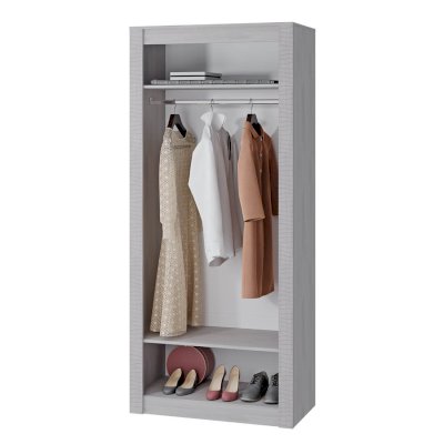 Двухстворчатый шкаф Монако относится к одноименной модульной серии. Модель не имеет вычурного декора и лишних деталей, выполнена в сдержанном и лаконичном стиле. Комплектация шкафа представляет собой ниши для хранения вещей в сложенном виде, а также отделение с хромированной штангой для одежды на вешалках. Для создания модели используется качественная ЛДСП цвета белого ясеня. Створки дополнены изящными ручками.