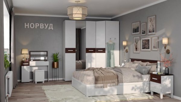 Двуспальная кровать из коллекции Норвуд выглядит свежо и современно. Модуль имеет лаконичный дизайн и простые геометрические формы, которые легко обыграть в интерьерах разных стилей. Выразительность кровати придают опоры со скосом и вставка в изголовье в декоре Орех Шоколадный. Основание для кровати - это самостоятельный модуль, поэтому докупается отдельно.