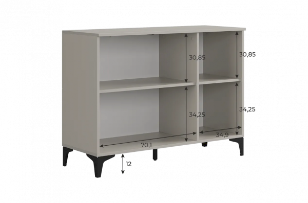 Дверцы комода выполнены из МДФ с фрезеровкой и скрывают за собой просторное хранилище для различных вещей.