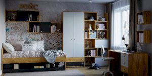 Навесной шкафчик с открытыми и закрытыми нишами, полками - удобный способ настенного хранения самых разных вещей. Универсальный модуль ЛОЙС 88 можно навесить на уголки как горизонтально, так и вертикально. В вертикальном положении рекомендуем использовать шкаф как функциональную надстройку для тетрадей и учебников.