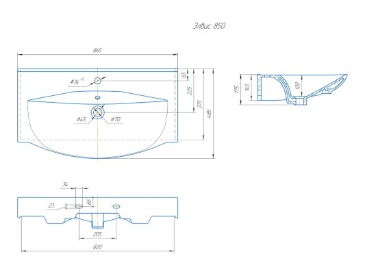 • 850 - (ШхГхВ), в см: 86,5х48,5х12