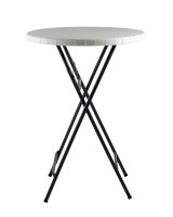 Диаметр стола 81 сантиметр обеспечивает комфортное размещение 3-4 человек, и для масштабного события может потребоваться несколько изделий. Однако благодаря складной конструкции модель займет минимум места при перевозке, благодаря чему столы можно перевезти небольшой партией и на легковом транспорте. Для каркаса используется стальная труба особой прочности, а столешница выполнена из 100% не переработанного полиэтилена HDPE (полиэтилен высокой плотности). Считается одним из более безопасных видов пластика. HDPE пластик выдерживает высокие нагрузки, не трескается при ударной нагрузке, эластичен в диапазоне температур от –70 до +100 °С.