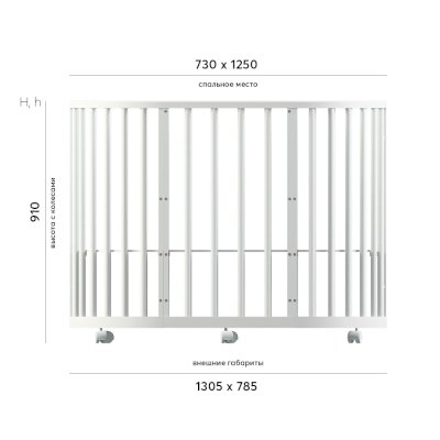 • Высота кровати: 85 см без колес, 90 см с колесами.