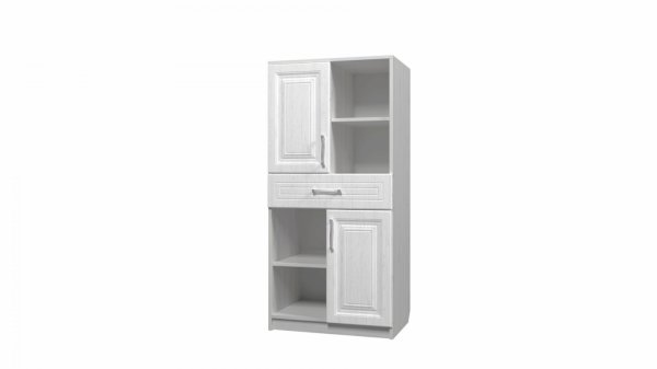 Фрезеровка на фасадах этого набора воспринимается очень лёгкой и изящной, благодаря мягким линиям и спокойному классическому рисунку.