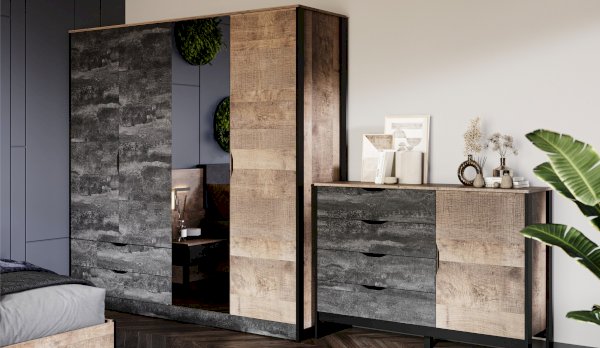 Цвет фасада: Дуб гранж песочный/Железный камень