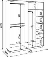 • Размер:(Ш×Г×В): 1800x510x2220 мм