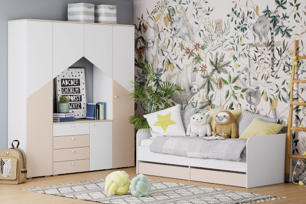 Шкаф для белья Банни не займет много места в детской комнате. Компактная, но очень вместительная модель шкафа с пятью полками, позволит разместить вещи и игрушки. Скругленные ручки-кнопки не имеют острых граней.