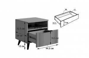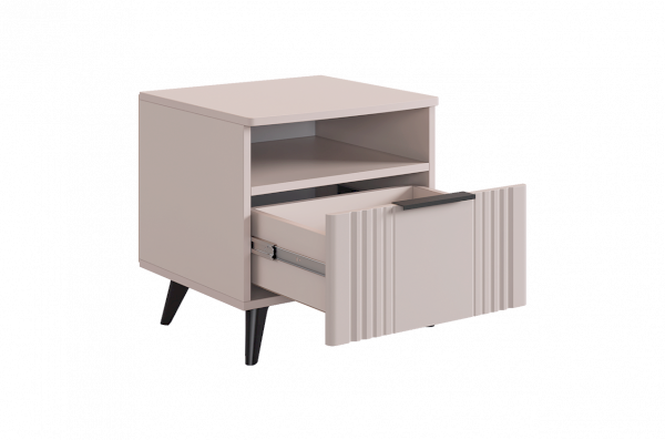 Благодаря компактным размерам тумба легко впишется в любой интерьер и гармонично сочетается с другими модулями спальни «Катрин». Выкатной ящик на шариковых направляющих обеспечивает удобный доступ к вещам, а нерегулируемые пластиковые опоры гарантируют стабильность конструкции.