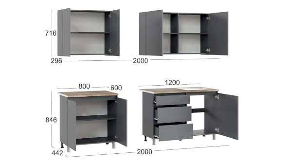 Высота верхних/нижних модулей: 716/846 мм