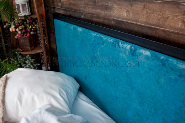 Кровать Лофт Лоренцо чёрная с голубой вставкой (Francesco Rossi)